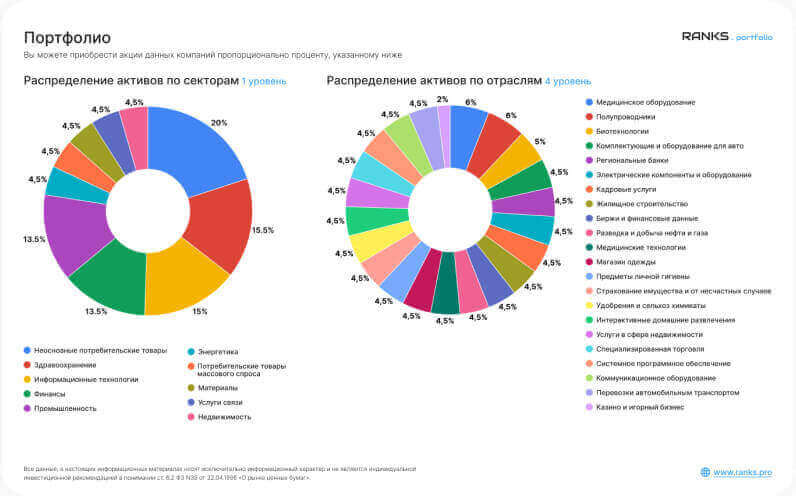 При этом портфель хорошо сбалансирован компаниями из разных отраслей (в которых отобраны лучшие компании)