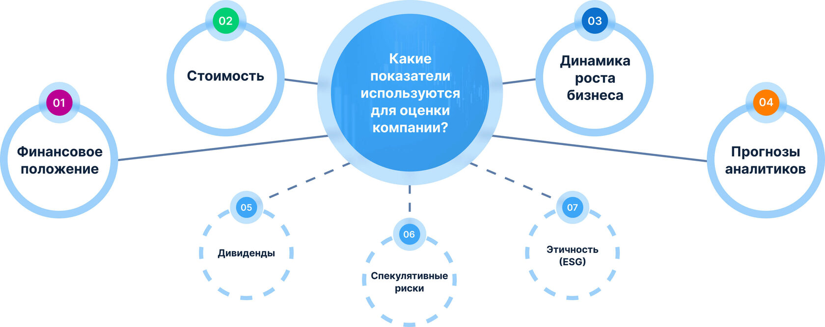 Сбор показателей в 7 блоков – Финансовое положение, Стоимость, Динамика роста бизнеса, Прогнозы аналитиков, ESG повестка, Спекулятивные риски, Дивиденды и выкупы, выставление каждому блоку рейтинга от 0 до 100% (От худших к лучшим)