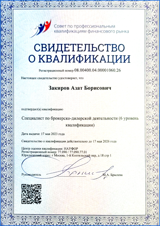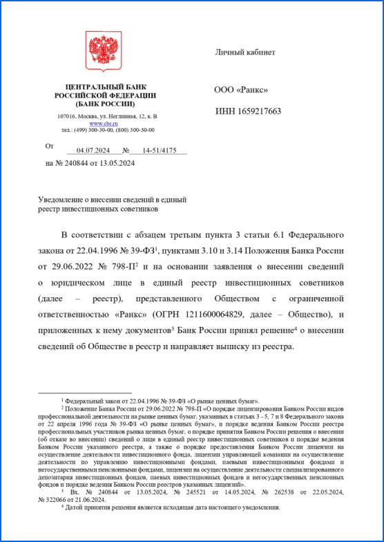 В реестре инвестиционных советников ЦБ РФ под номером 249