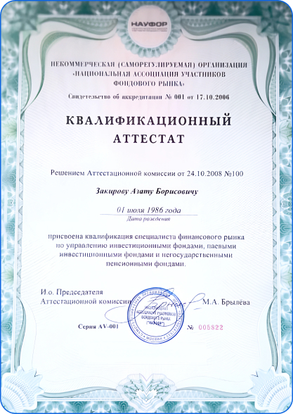 018–07753–001000 от 10.06.2004 выдана ФСФР России без ограничения срока действия. Лицензия на осуществление деятельности по управлению инвестиционными фондами, паевыми инвестиционными фондами и негосударственными пенсионными фондами 21–000 1-00105 от 21.01.2003